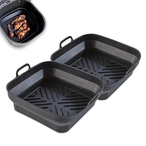 Tower T843092 Square Air Fryer Trays, Set of 2 Reusable Silicone Liners, Suitable for Most Dual Basket Air Fryers 6 litres and Above Including Tower Vortx and Ninja Foodi, Non-Stick, Dishwasher Safe