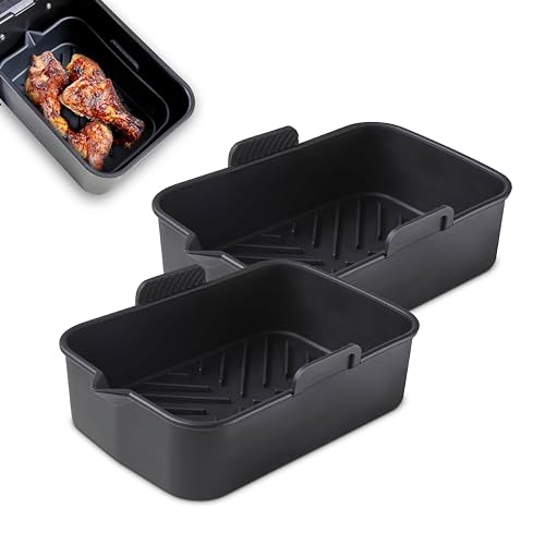 Silicone Air Fryer Liner for Ninja Dual, 2PCS Air Fryer Accessories Reusable AirFryer Silicone Liner Compatible with Ninja, Salter, Tower and Other Dual Zone Air Fryer