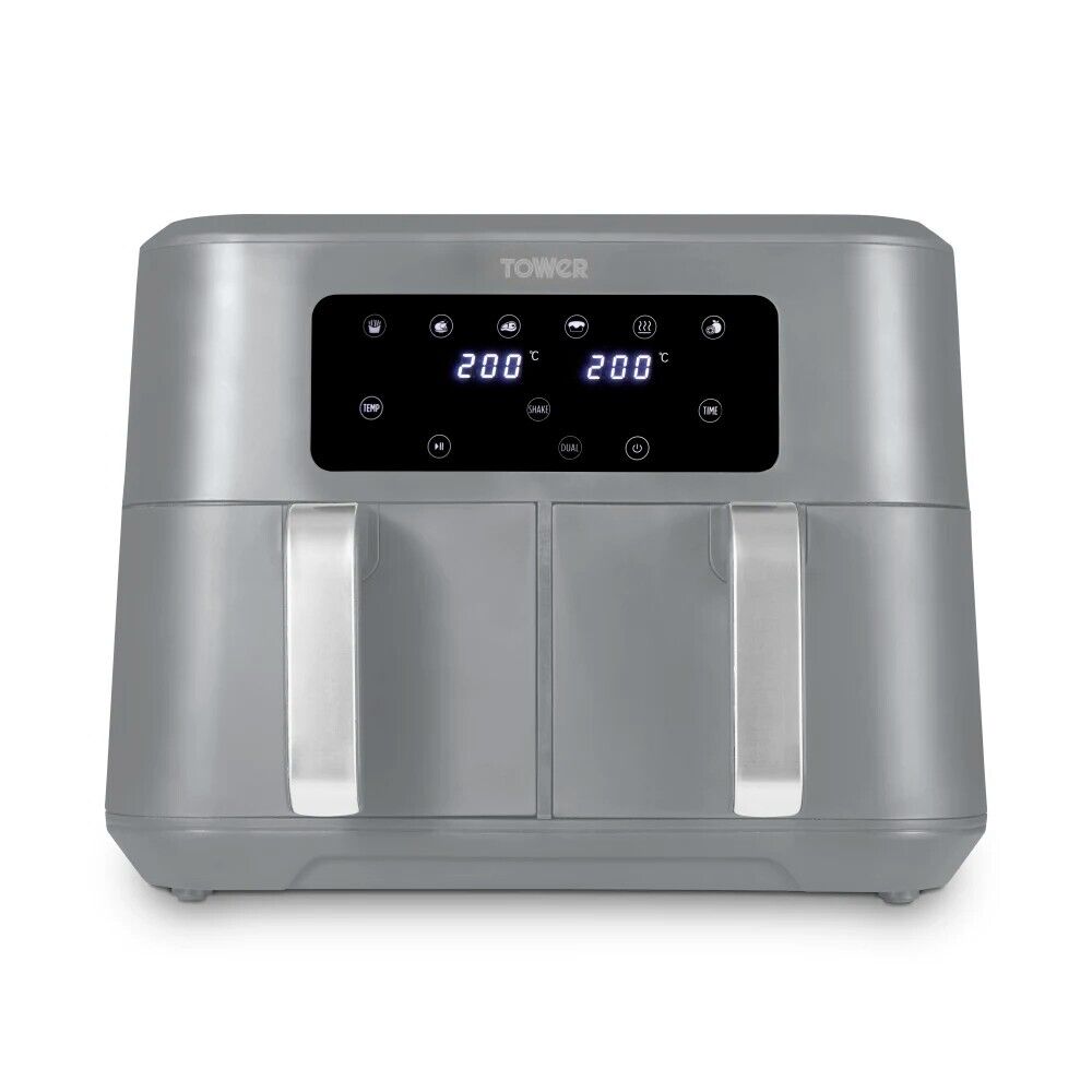 Tower Vortx 8.5L Dual Basket Digital Air Fryer in Grey & Chrome T17137CGRY
