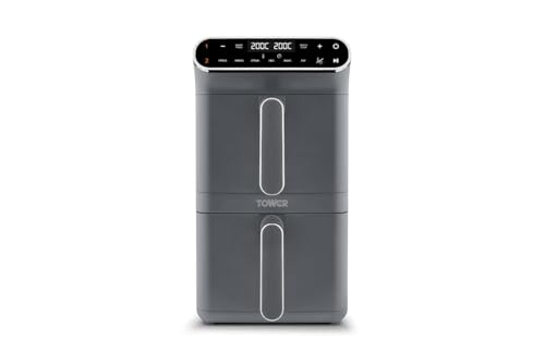 Tower T17190GRP Vortx XL Dual Stack Air Fryer with Digital Control Panel, Space Saving Design, 6 Preset Cooking Modes, Match Cook & Smart Finish Functions, 2460W, 11L, Graphite with Chrome Trim
