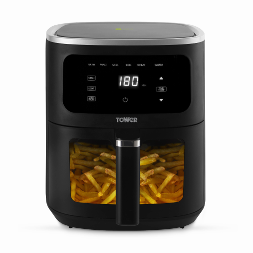 Tower T17117 Vortx Eco Saver Air Fryer with Vizion viewing Window, 1500W, 6L, Black