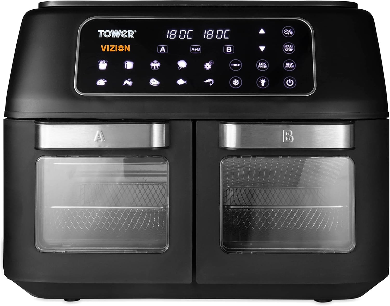 Tower T17102 Vortx Vizion Dual Compartment Air Fryer Oven with Digital Touch Pa