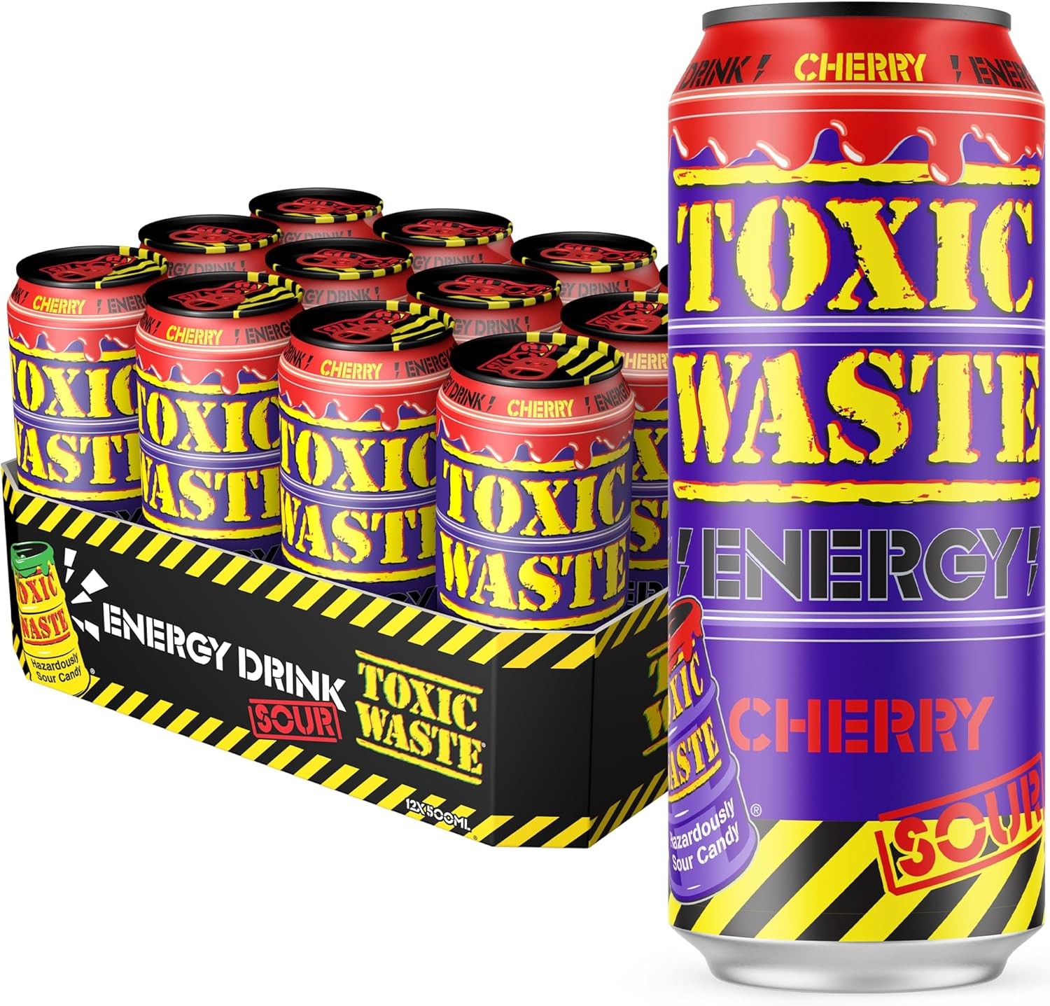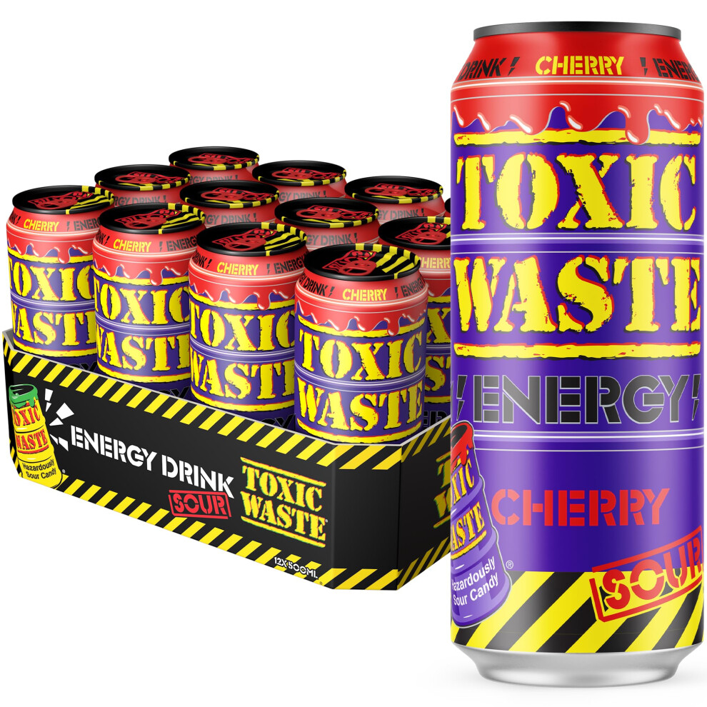 TOXIC WASTE Sour Cherry Energy Drink â 12 x 500ml Cans Sparkling Fizz with