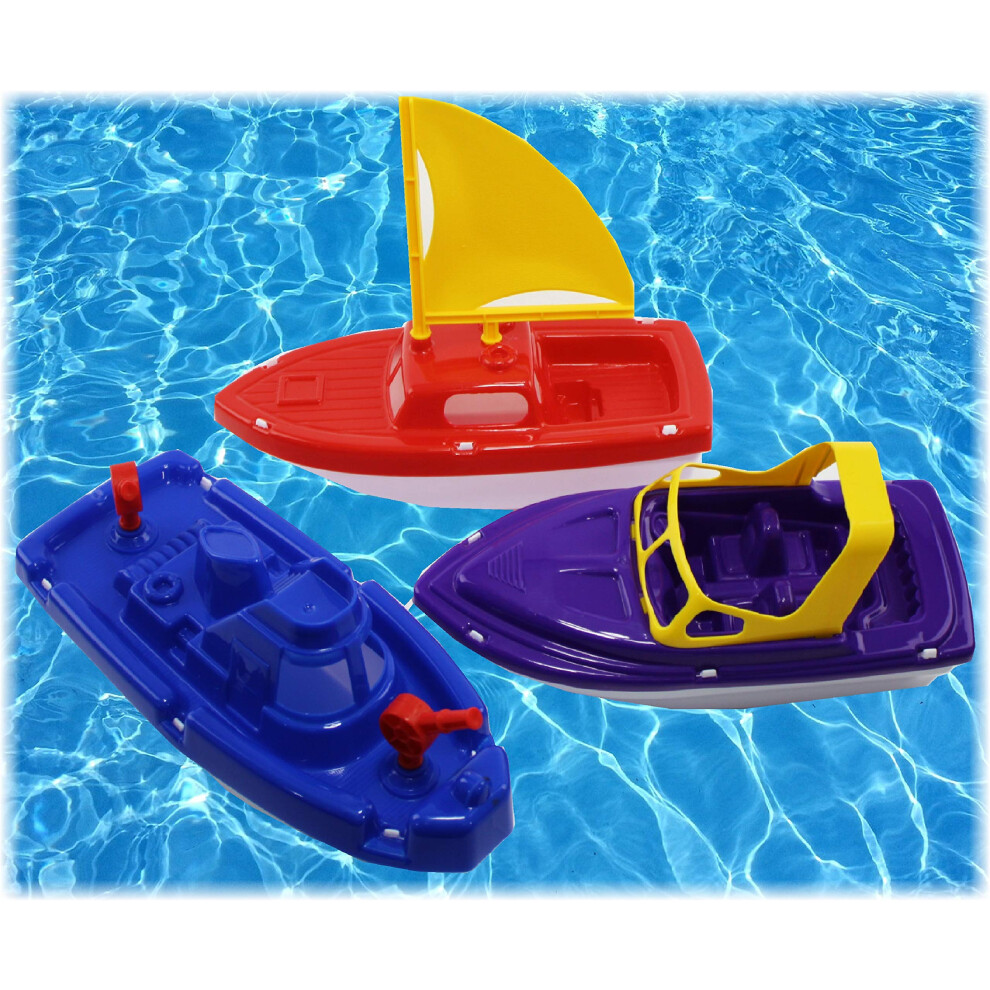 Porgeel 3Pcs Toy Boats, Funny Small Plastic Boat Bath Toy Lightweight Speedboat, Sailboat & Motorboat for Summer Beach Pool Backyard Games