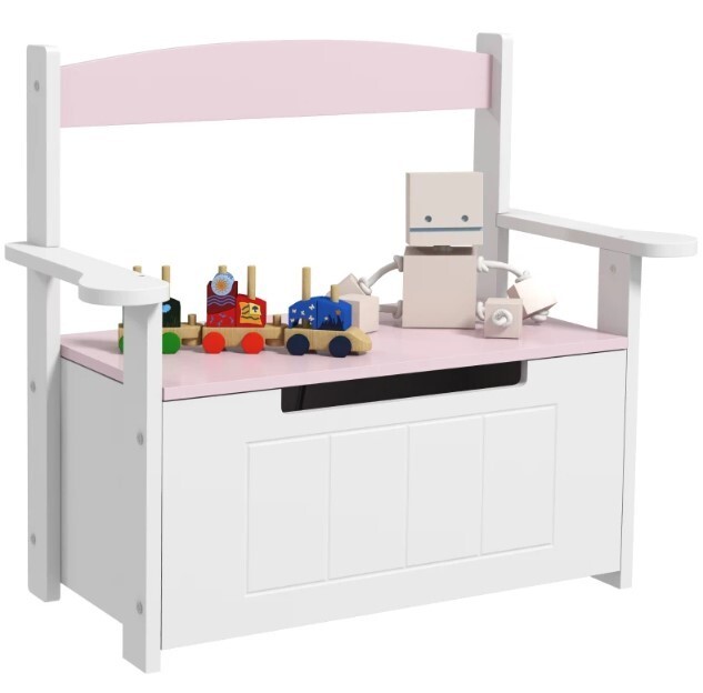 Pink MDF 2-in-1 Toy Box & Chair for Kids, 68.5x34x58cm, Safety Lid, Nursery