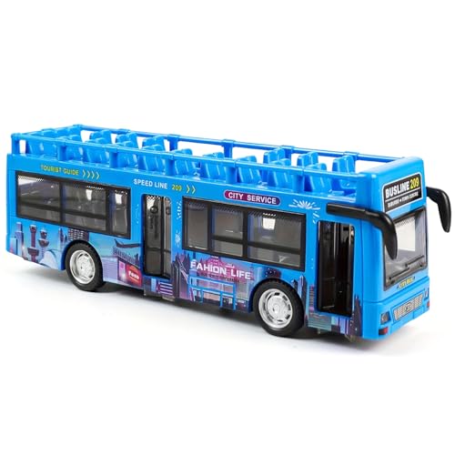 CLKDPNO Bus Toy Double Decker, Alloy Diecast Pull Back Bus Toy Vehicles, 1:64 Scale Pull-Back Buses, Metal Cars Model,Car Model City Buses Kids Gifts - Open Top