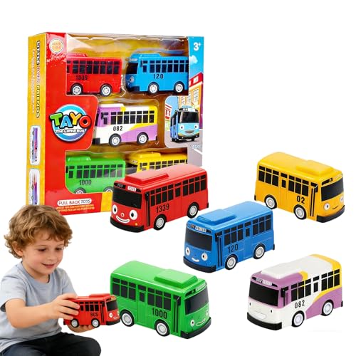 JiaQuenWex Bus Toy – 5PCS The Little Bus School Buses with Box, Die-Cast Pull-Back Vehicles, 1:64 Scale Model Cars, Mini City & Double-Decker Buses, Collectible Toy Set for Imaginative Play & Display