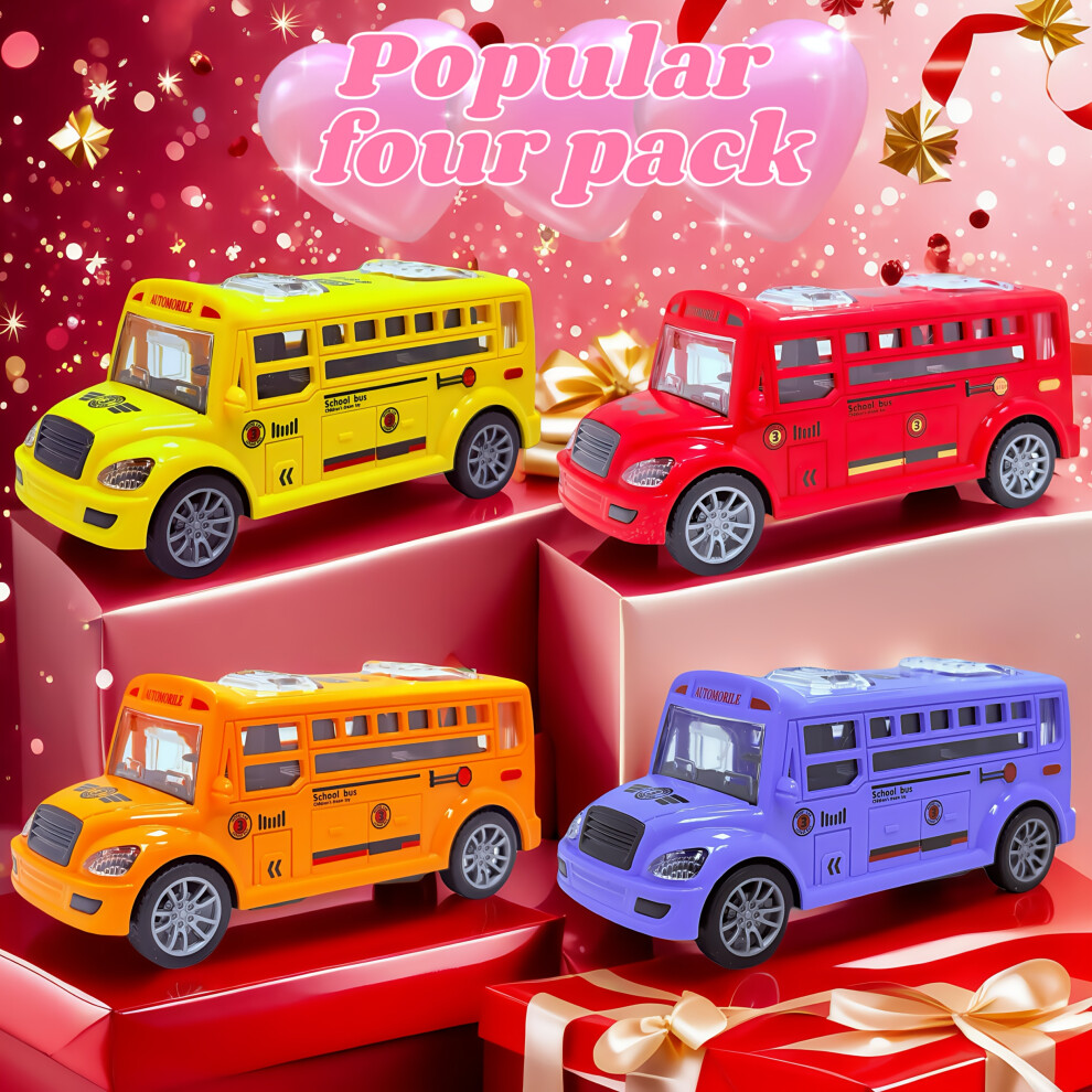 (Four Mini Buses) Pull-Back Inertial Toy Car | Boys' Simulation Campus Bus, Plastic Four-Wheel Model - Perfect for Decorating, Friends, Halloween & Ch