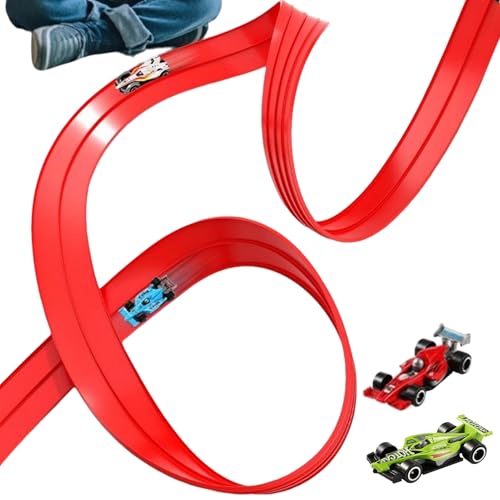 5M Flexible Race Track, Rolls Up Portable Racetrack with 4 Alloy Cars, Toy Car Ramp Rolls up Portable Dual Racetrack for Jumps Loops Ramps, Gifts for Kids Birthday Gift Set (Red)