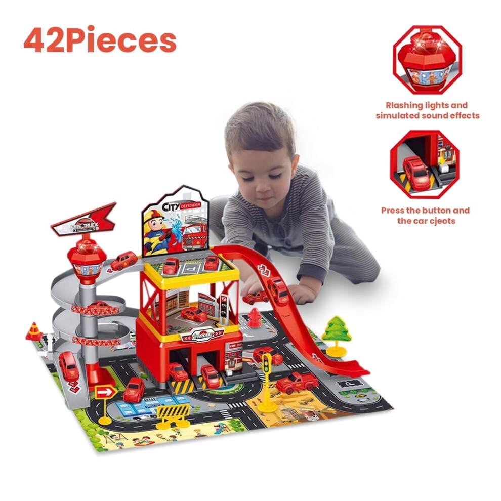 Parking Garage Toy Playset Interactive Car Ramp Track Toy Set