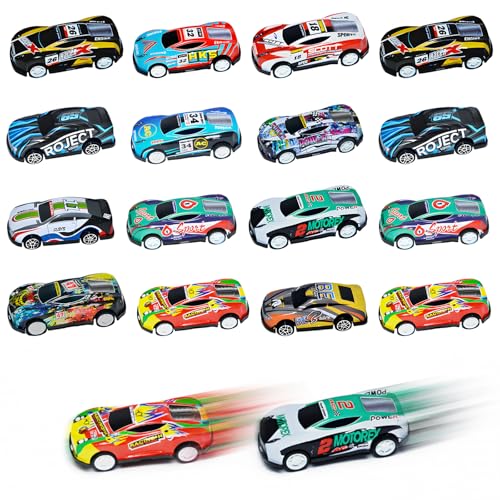 Bodeshis 16 Pcs Toy Cars for 2 Year Olds, Alloy Mini Cars Set for Kids, Durable and Safe for Indoor and Outdoor Play, Ideal for Birthday Parties and Classroom Rewards, 6.8 x 2.3 x 3.1 cm