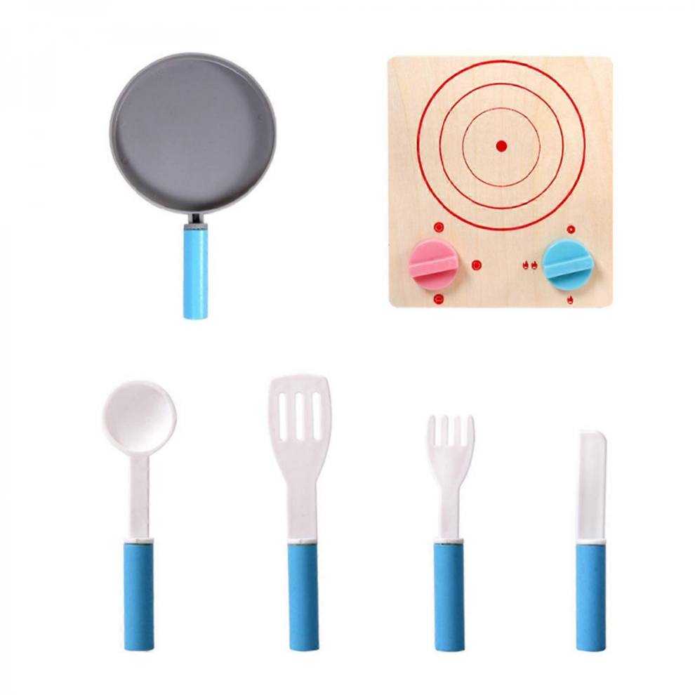 Blue Kids Toy Kitchen Wooden Cooker Children Imitation Play TeamsonKidsTD12681B