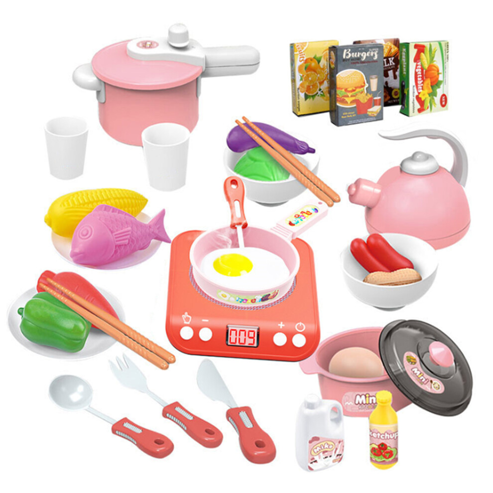 Electronic Induction Cooker Toy Set: 34pcs Red Kitchen Play Set
