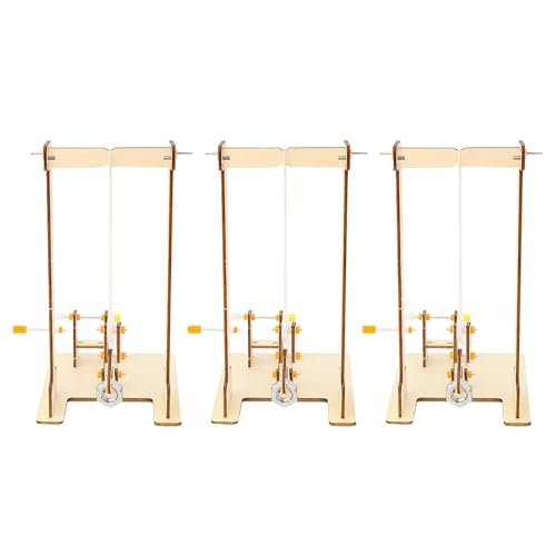 Milisten 3sets Hand-cranked Crane Toy Wooden Model Kit for Boys and Girls Physics Experiment Assembly Toy Teaching Tool Science Learning Kits