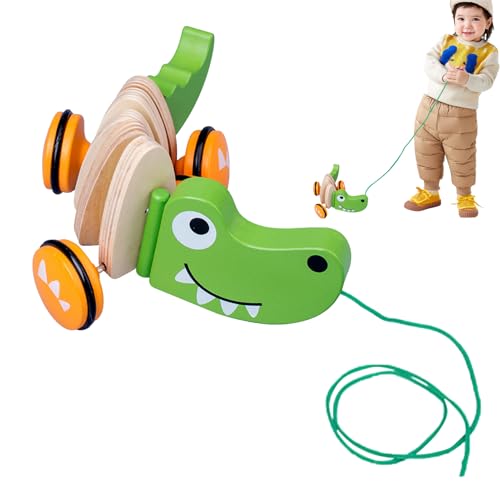 Wooden Pull Along Toy Crocodile, Pull Along Dog Toy, Encourage Hand Eye Coordination & Fine Motor Skills, Adorable, Early Development & Learning Toys, Engaging & Interactive Toys For 12 Months +