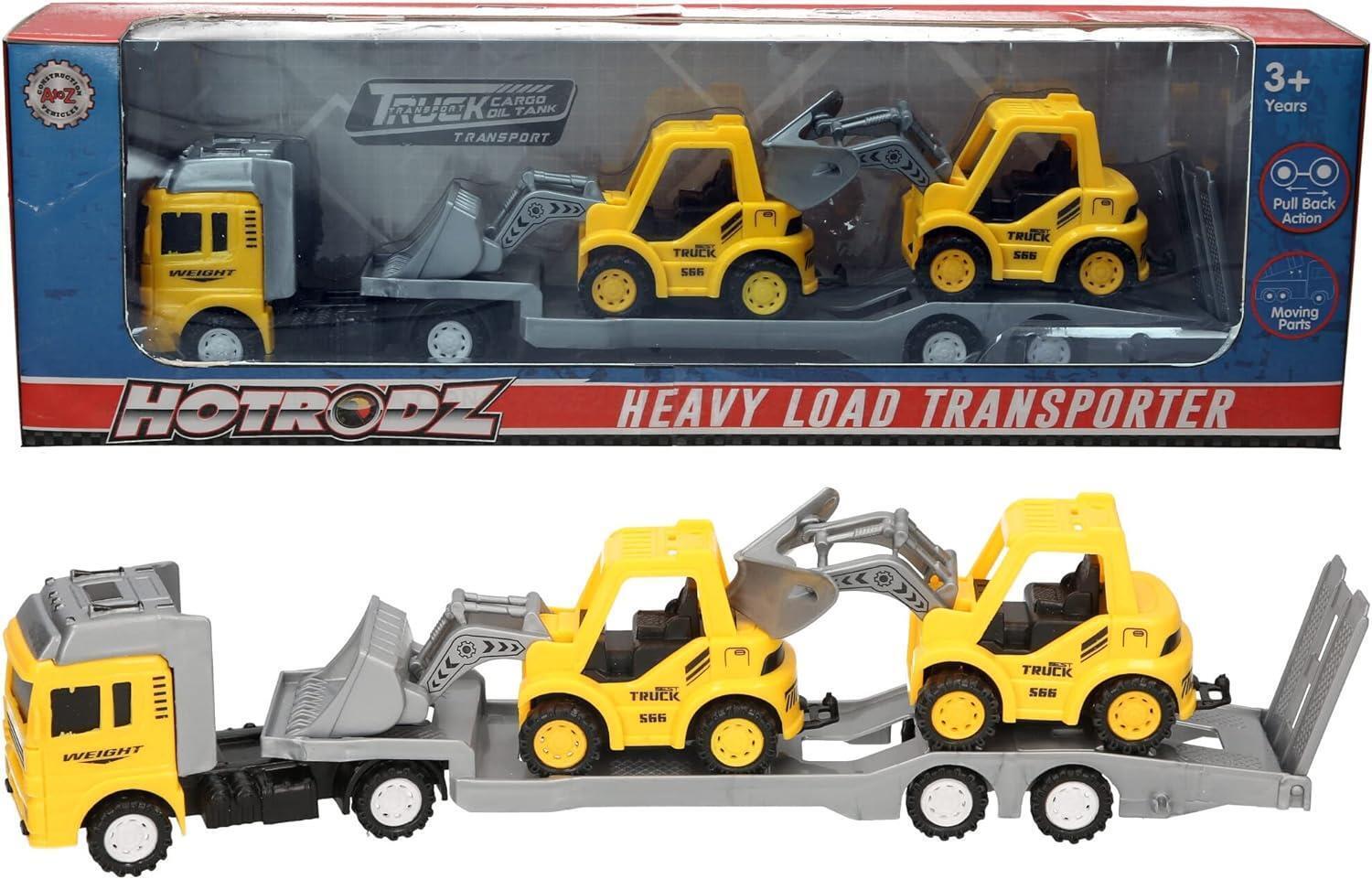 Toy Truck Transporter & 2 Diggers Hotrodz Plastic Play Set Pull Back Action 3+