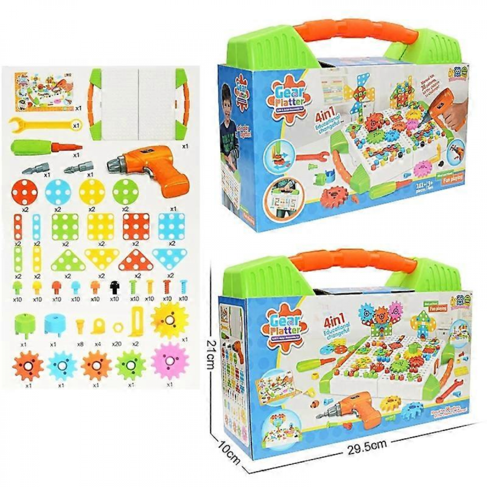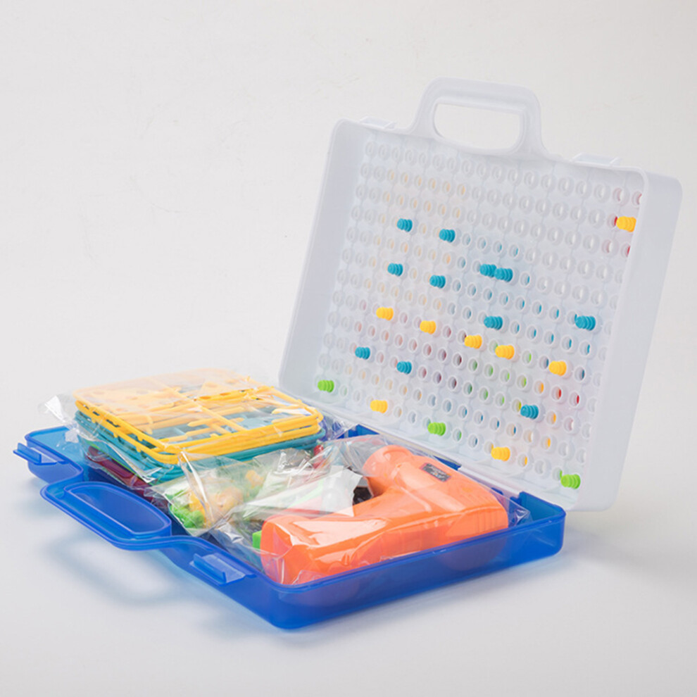 181pcs Children Electric Drill Toy Set with Box, Nut Disassembly Match Tool, Building Blocks Educational Design Gift for Boys