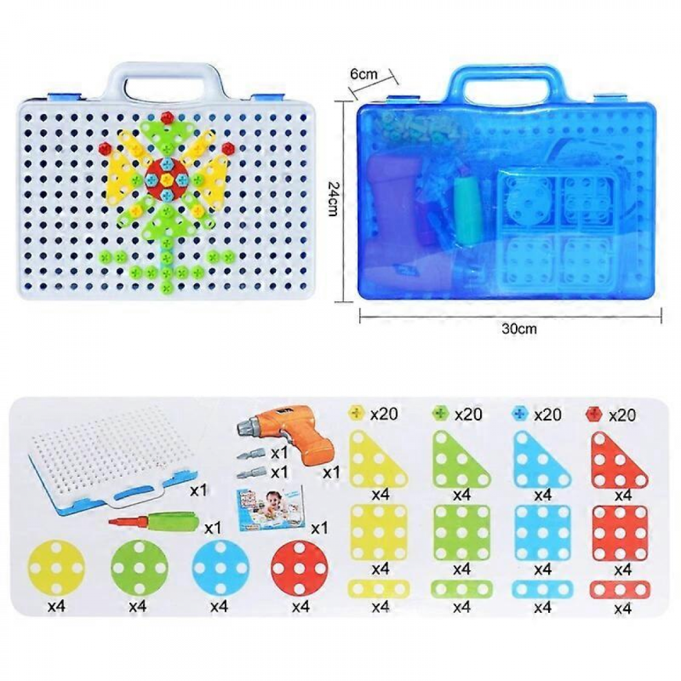 Magic Montessori Play Toolbox, 210 PCS Creativity Tool Box with Drill, Creative Mosaic Puzzle Toy With Electric Drill Screw Tool Set, Montessori Tool Box with Drill for children, Boys and Girls