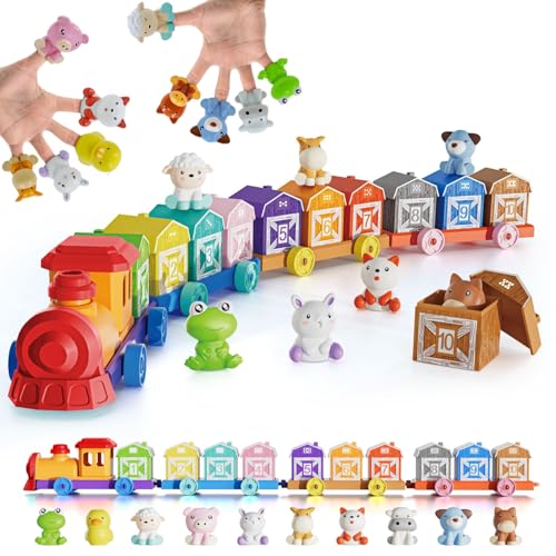 Toddler Train Set Counting Matching & Sorting Activity Toddler Train Toy with Farm Animals Finger Puppets Montessori Toys for Kids