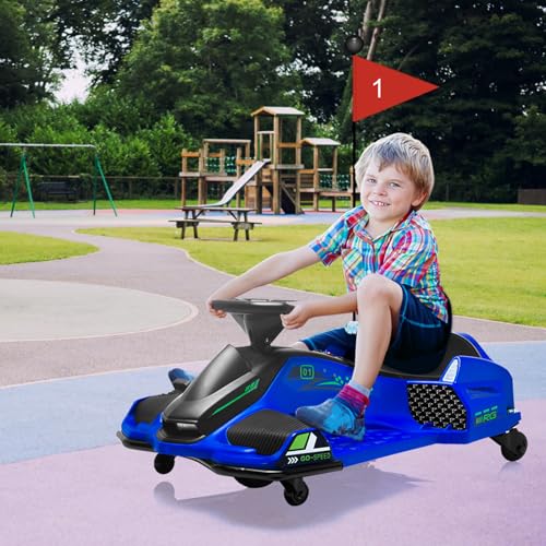 Kids Go Kart Electric Wiggle Car Floor Cleaning Function Outdoor Ride On Toy for Ages 3 and Up(Gray)