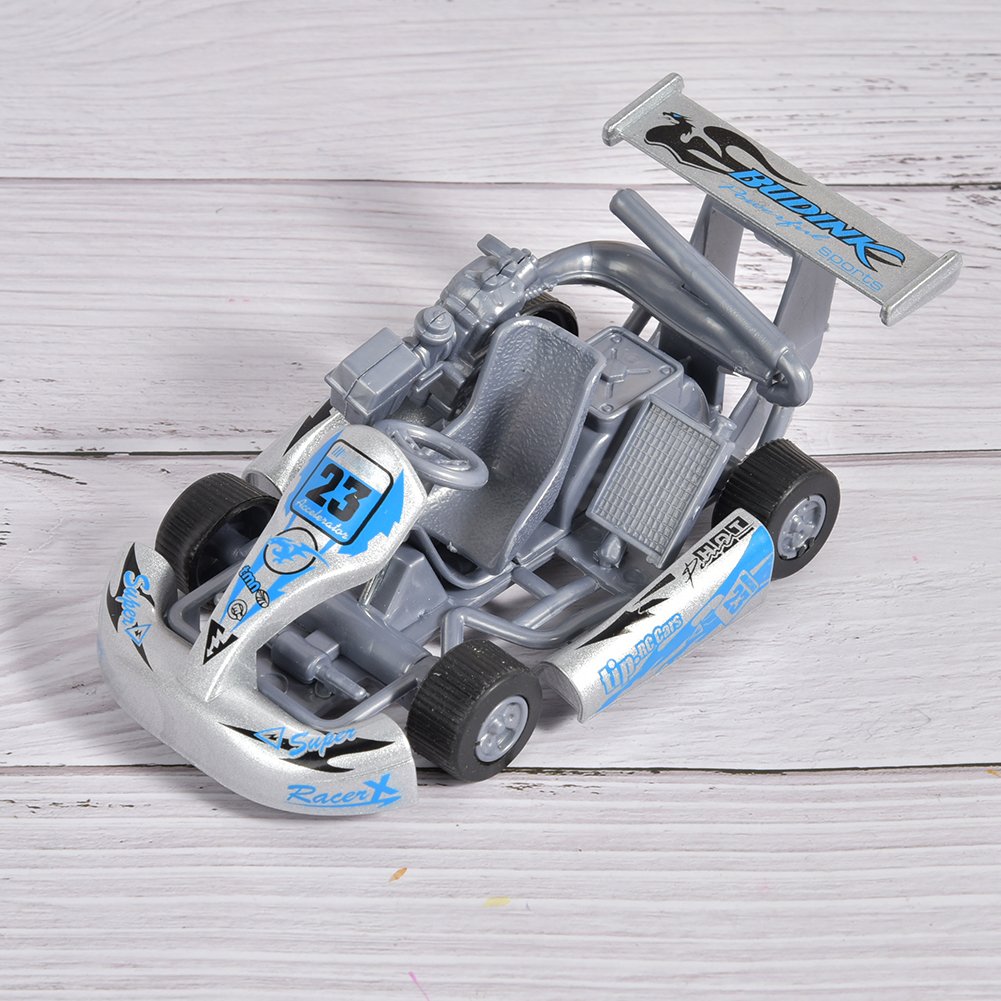 KIMISS 1:32 Scale Alloy Go Kart Racing Car Pull Back Toy Model for - Blue - Realistic Design, Smooth Edges, and Eco-Friendly Materials (Silver)