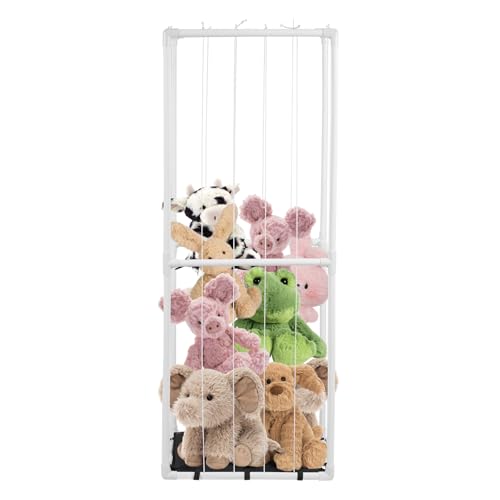 EaiXwCoUy Plush Toy Storage Holder with Bottom, Stuffed Animal Organizer for Kids Room, Freestanding Toy Hammock with Large Capacity, White