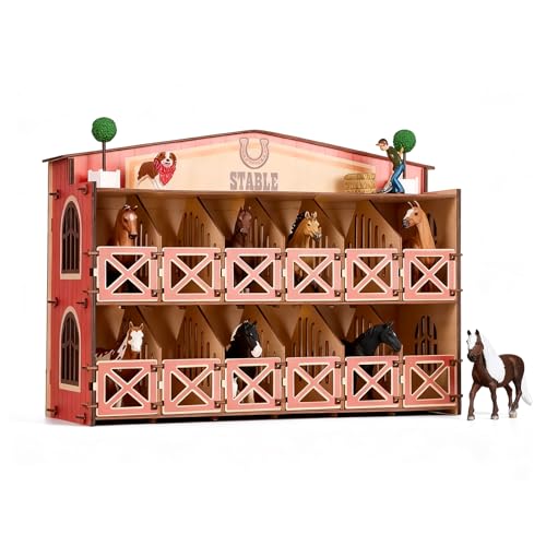 SUNUCO Wooden Horse Stable Toy with 12or18 Stalls 2 or 3 Story Play Barn Horse Barn for Model Horses & Farm Animals, for Little Boys & Girls (Two-story)