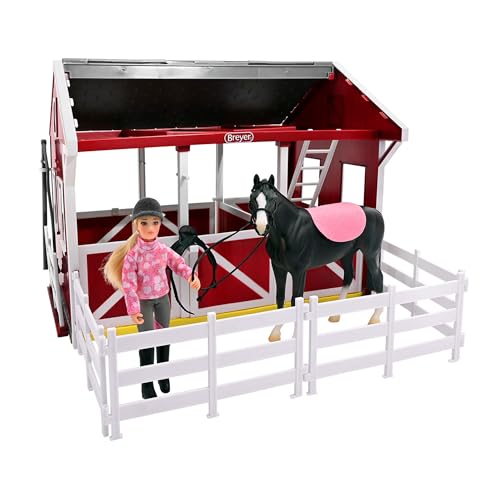 Horse Barn Playset Lifelike Vibrant Horse Stable Playset Includes Shower, Crib, Fence & More Educational Developmental Toy Barn, Toddler Gifts