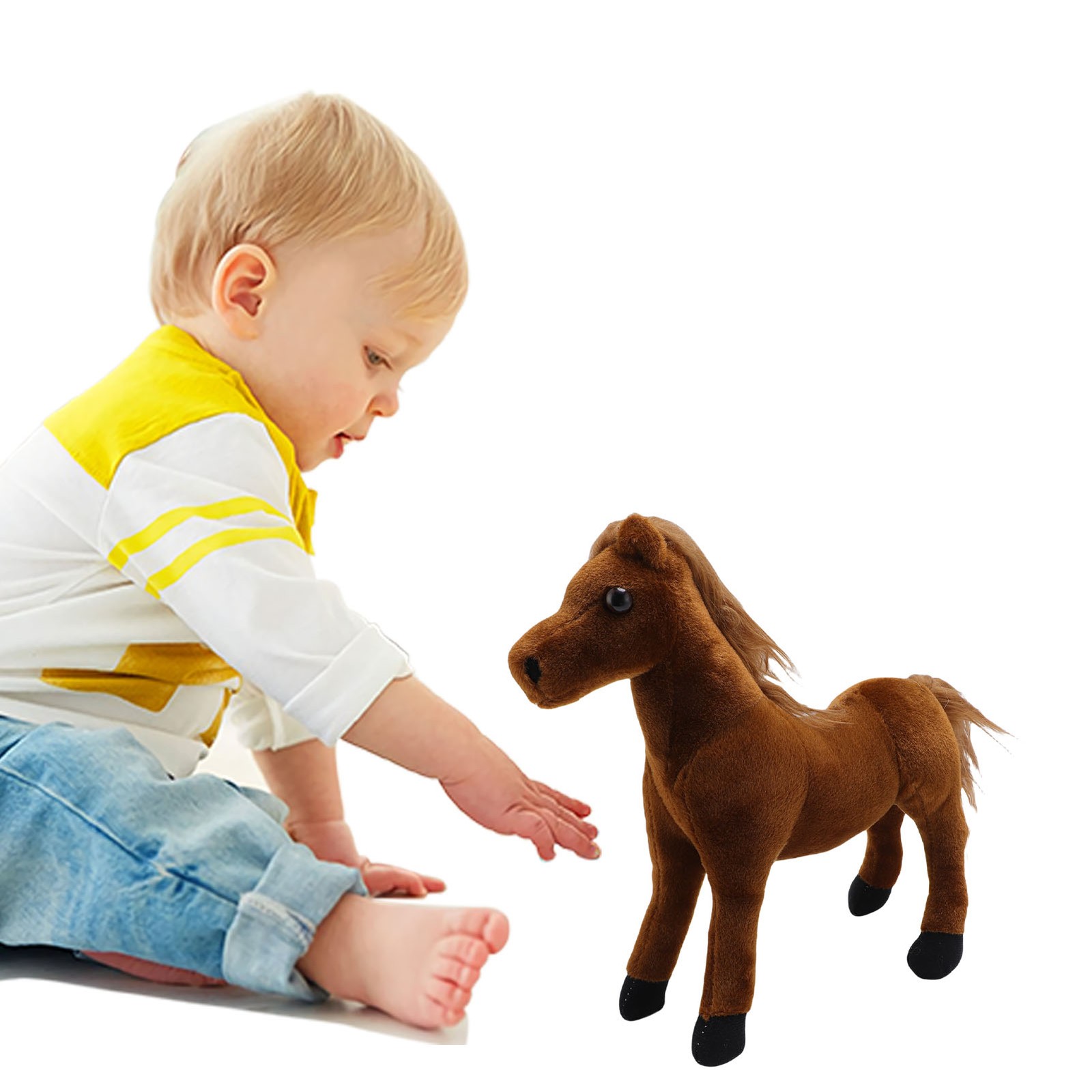 BEJOY Plush Horse Toy, Horse Pretty Plush Toy Pretend Play Horse Gift for Girls Kids, 11 inches, Brown