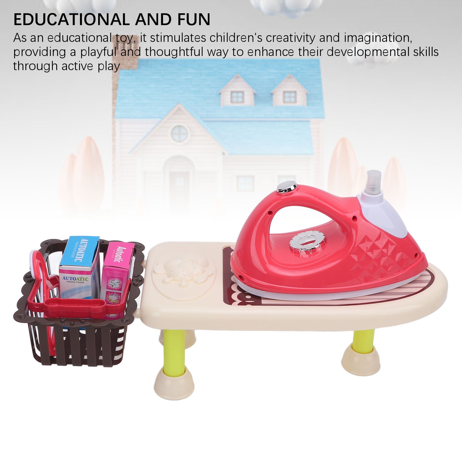 Cryfokt Kids Ironing Board Toy Versatile Educational Laundry Playset, Family Role Playing Set for Boys Girls