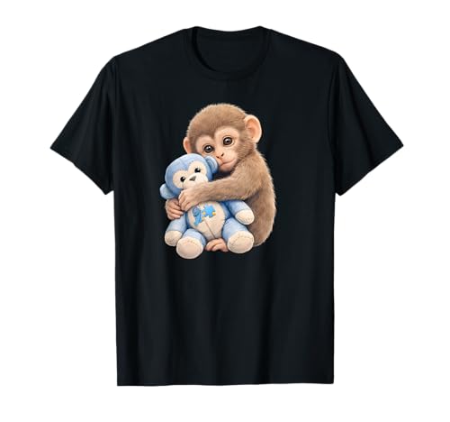 Baby Monkey Punch Hugging Plush Toy Autism Awareness Monkey T-Shirt