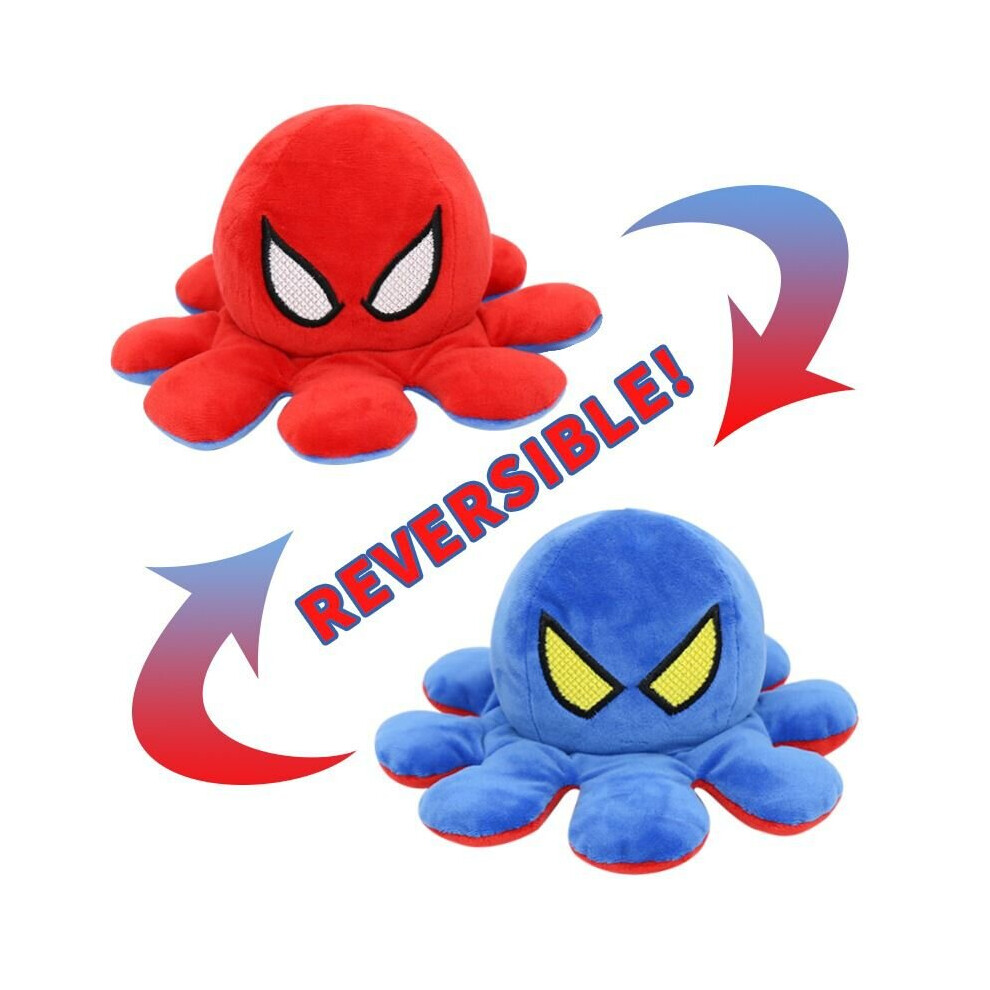 (Red Blue) Spiderman Reversible Octopus Plush Toy Batman Iron Man Double-Sided Flip Stuffed