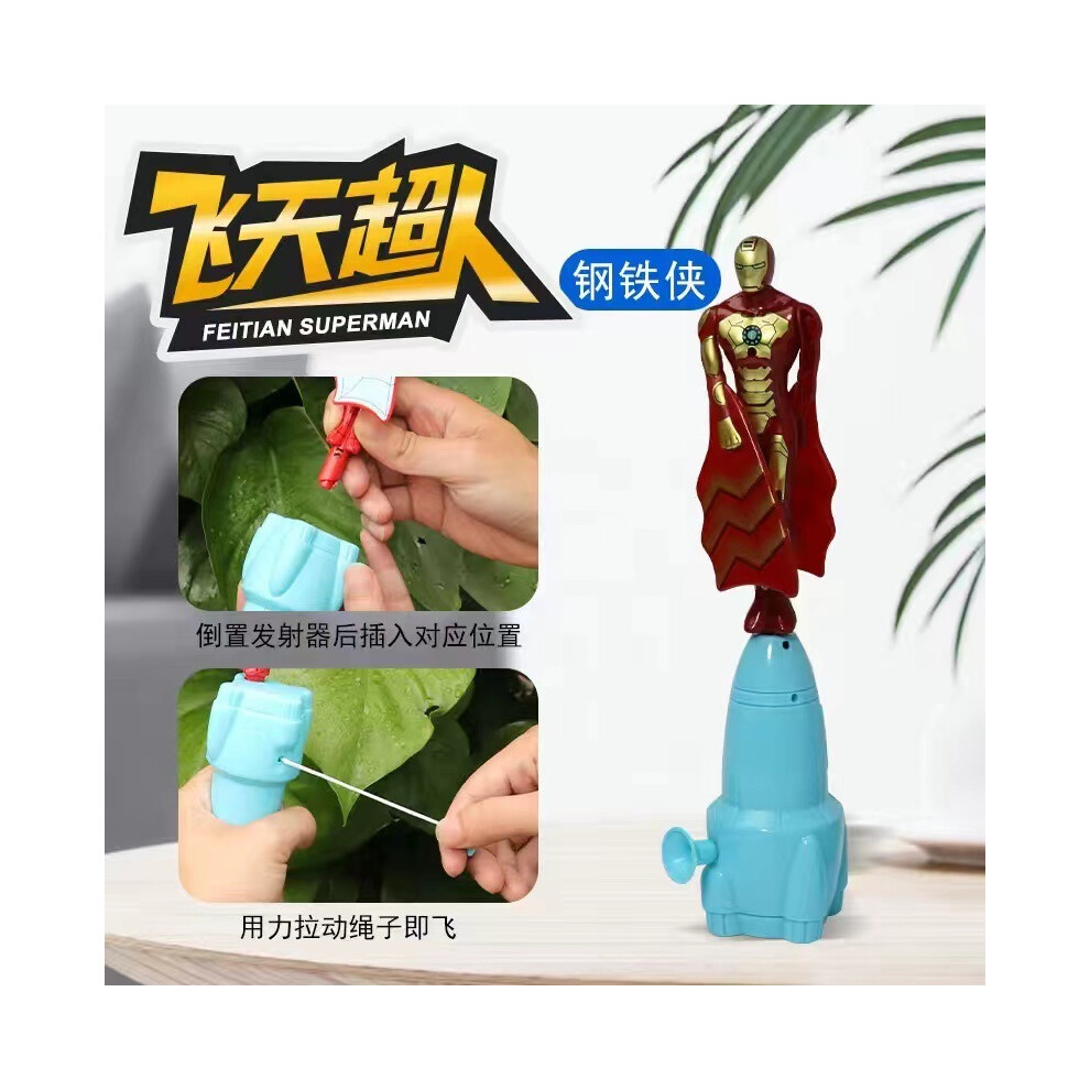 (B) Flying Toy Action Figure Model Iron Man Captain America String Bamboo Dragonfly Flying Toys Outdoor Toys Gifts