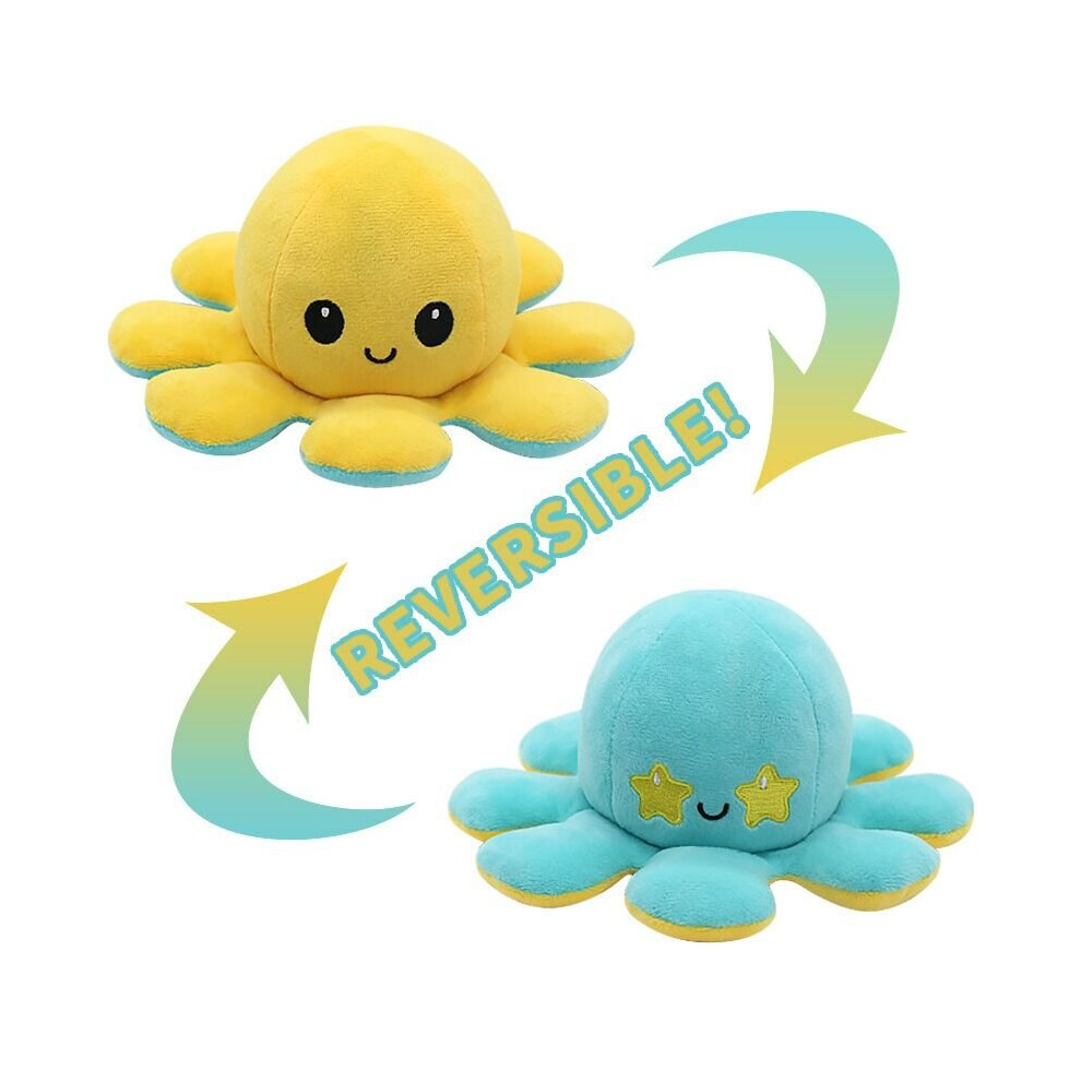 (Yellow Blue) Spiderman Reversible Octopus Plush Toy Batman Iron Man Double-Sided Flip Stuffed