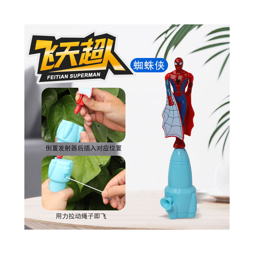 (Spider Man) Anime Spiderman Bamboo Dragonfly Flying Toy Iron for Man Captain Rotating String Flying Toys Outdoor Toy