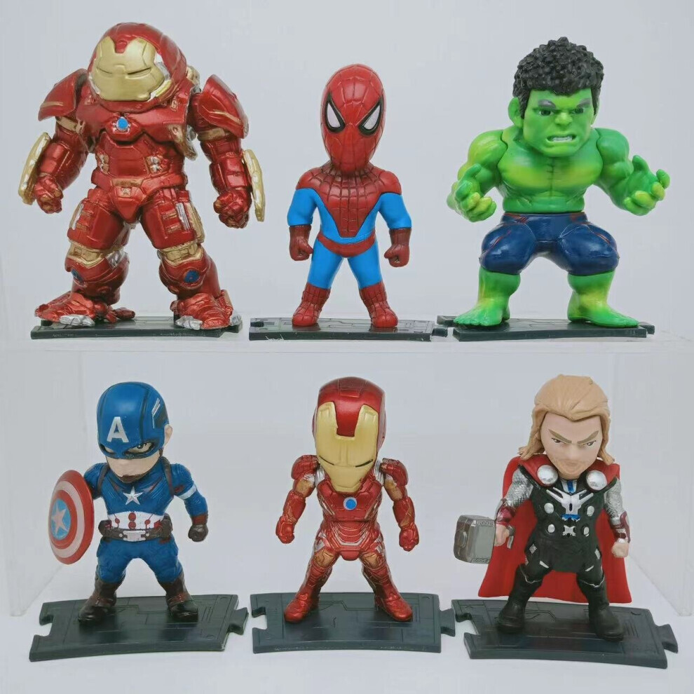 6PCS Avengers Figures Set Hand-made Blind Box Toy Spider-Man Iron Man Thor Model Decoration Children's Toy Gift Christmas Gift