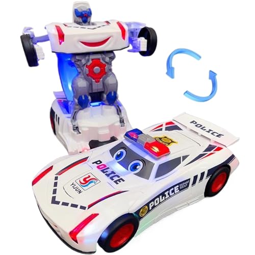 Joygoodta Police Car, Police Car with Light & Sound Transformable Toy with Universal Wheels Electric Cartoon Shatter Resistant Toy Cars for Kids, Girls, Boys