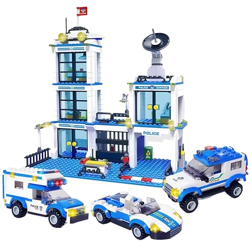 RLS City Police Station Headquarters Building Blocks Set – 8-in-1 Police Construction Brick Toy with 817 Pieces, Police Cars, 4x4 Vehicle, Armoured Truck, Helicopter & Prison Van, Creative STEM Buildi