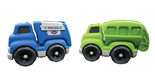LEXIBOOK, Bio Toys, Set of toy cars partially made of wheat fibers, Police truck and Bin lorry, Blue/green, BIOC06