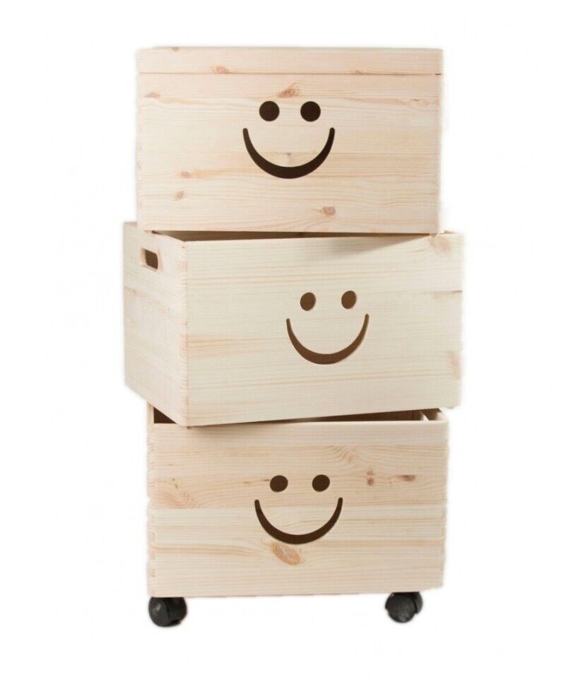 Pine Wood Toy Storage Boxes Kids Children Room Wooden Box Handles PACK OF THREE