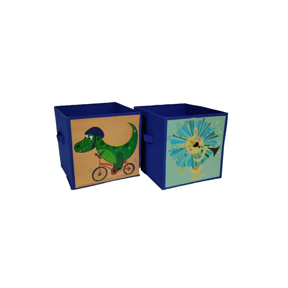 Kids Blue Toy Storage Cube Boxes 2 Fabric Storage Unit Boxes 26cm Dinosaur Lion