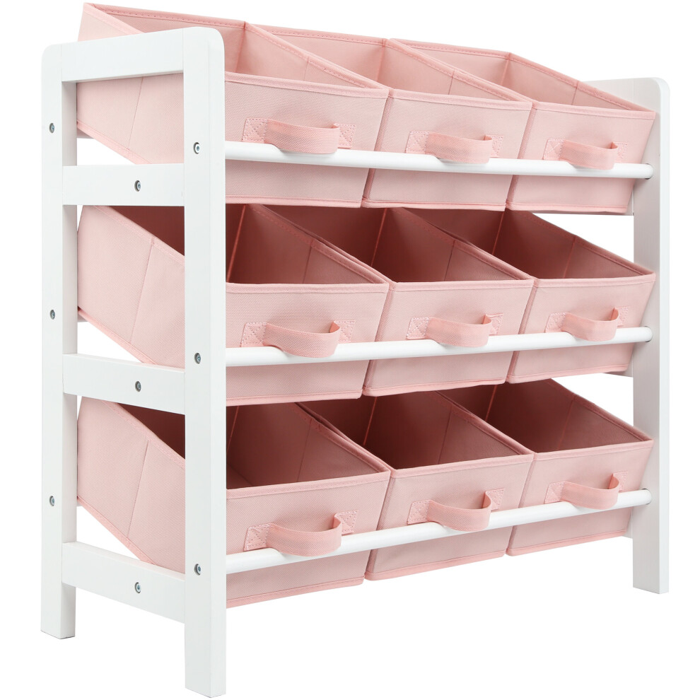 3 Tier Toy Storage Unit 9 Boxes Drawers Childrens Shelf Kids Bedroom Play Pink
