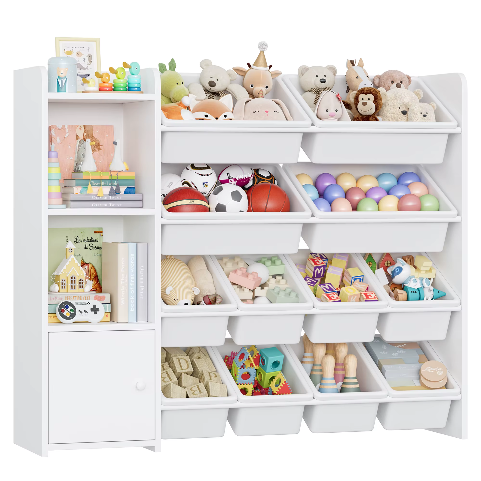 GarveeHome Kids Toy Storage Unit, Childrens Bookcase Toy Organiser with 8 Removable Toy Boxes & Storage Shelves, Kids Bookshelf for Nursery Playroom Classroom