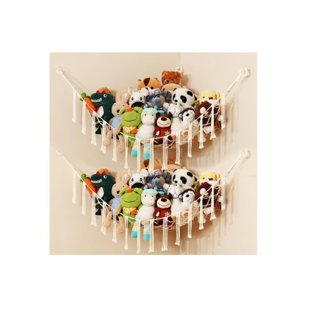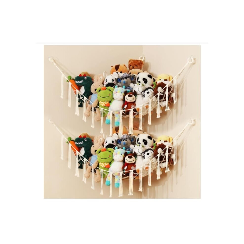 2 Units Toy Storage Hammock, Boho Toy Storage Hammock for Stuffed Animals, Hanging Organizer