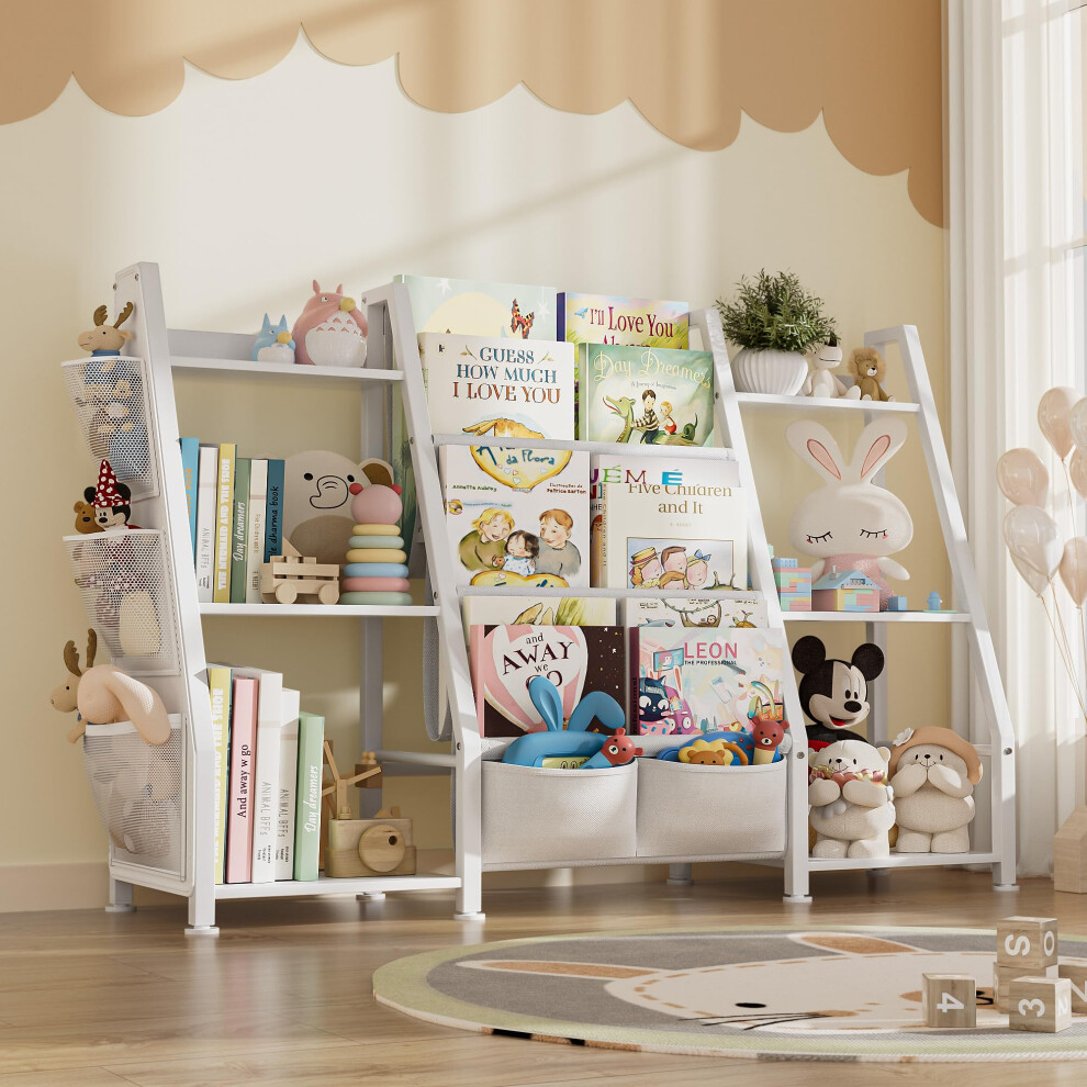 Kids Bookshelf,Children Kids Bookcase Shelves,Wooden Kids Storage Book Rack, Toddler Book Shelves Units Toy Organizer Cabinet Book Display Shelves for Bedroom, Playroom, Nursery, Kindergarten (White)
