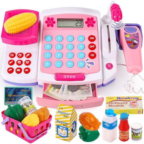 Melissa & Doug Grocery Store Playset & Toy Till Cash Register with Scanner & Con