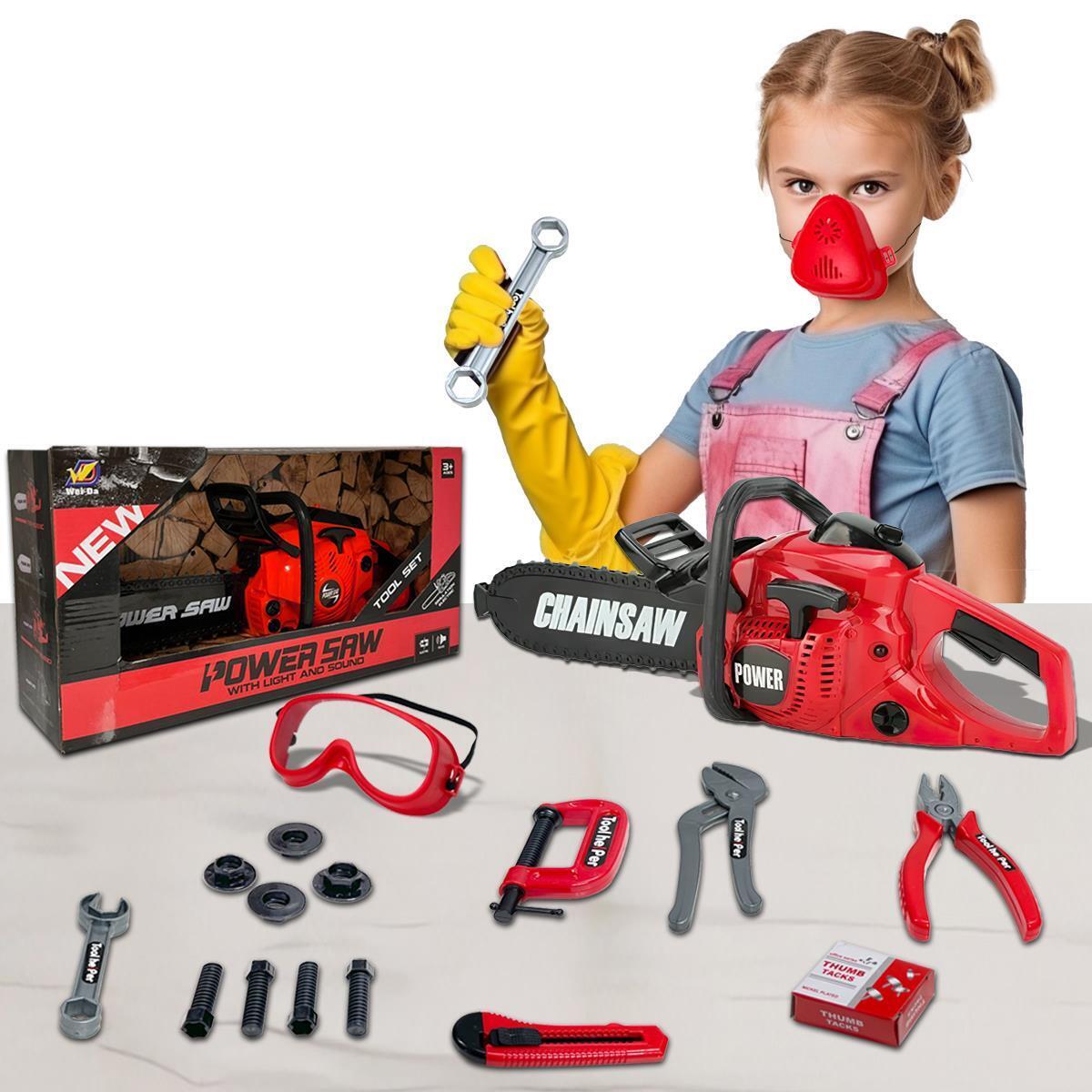 Pack of 18PCs Kids Chainsaw Construction Play Toy Tool Kit Realistic Light Sound