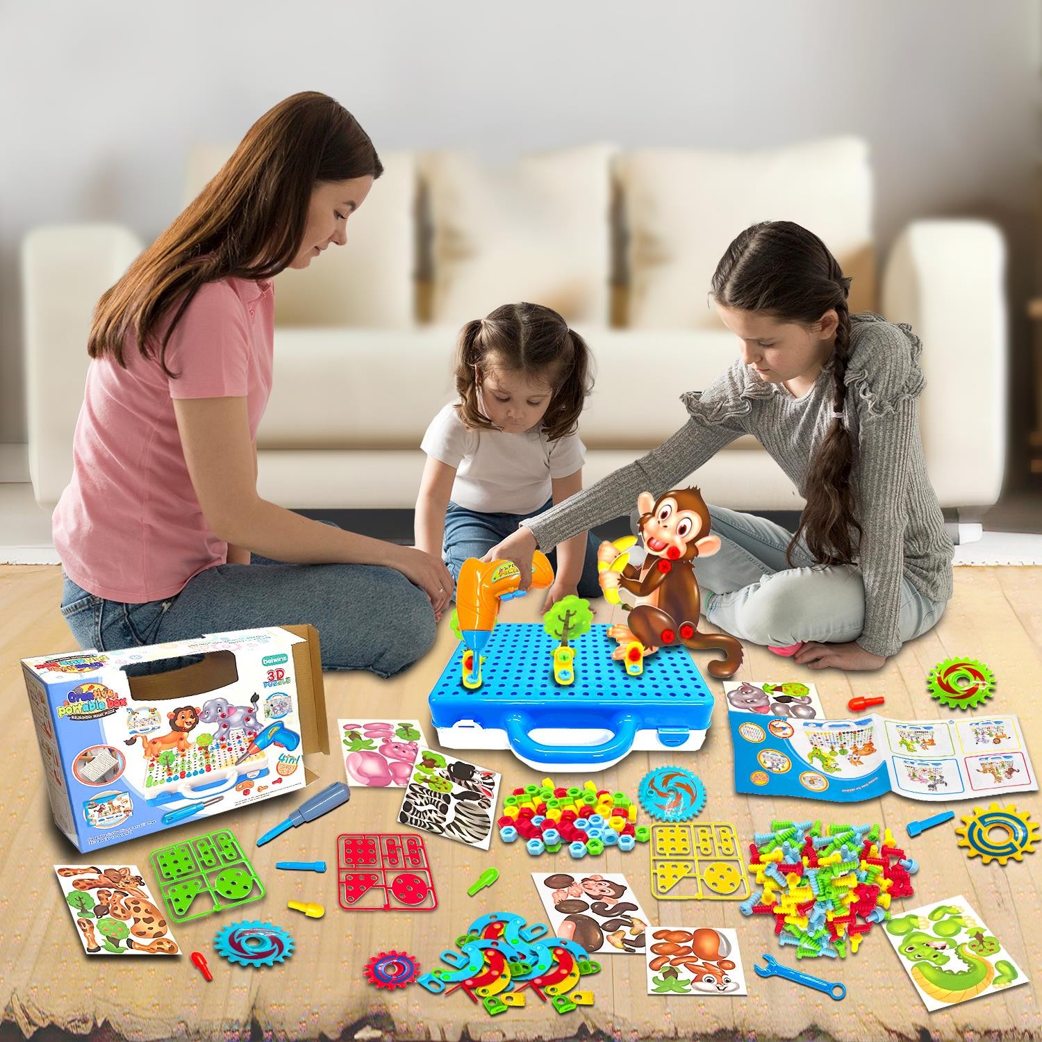 Kids Stem Toy Electric Drill,Electric Drill Toy,Kids Tool Set,Creative Mosaic Puzzle Toy With Electric Drill screw Tool,Magic Play Toolbox,Montessori Play Toolbox For Kids (Dinosaur-211PCS-With Dill)