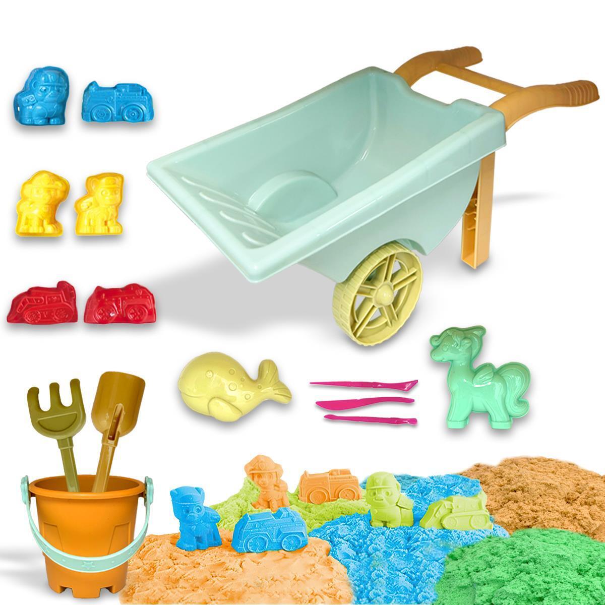 Kid Wheelbarrow Magic Play Sand Toy Mould Tool Kit Carry Case Sand Pit Tray Game