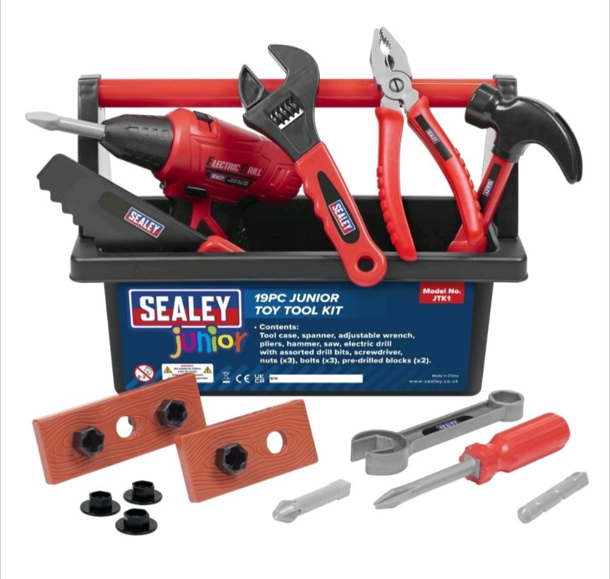 Sealey Junior 19pc Toy Tool Kit inc. Battery Powered Drill (Genuine Sealey JTK1)